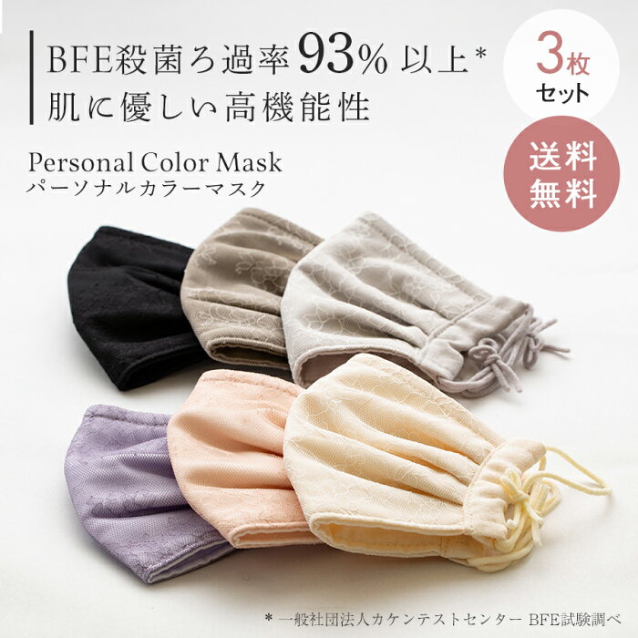 【洗える パーソナルカラーマスク3枚セット】不織布同効果 日本製 高機能 敏感肌の方にもおすすめ ブルベ イエベ 血色マスク レース地がかわいいガーゼマスク 花粉 ウイルスブロック アイボリー ピンク パープル グレー カーキ ブラック
